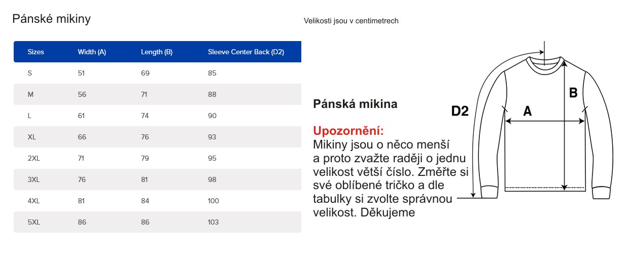 Model má na sobě mikinu XL. Váha 90 kg a výška 188 cm.